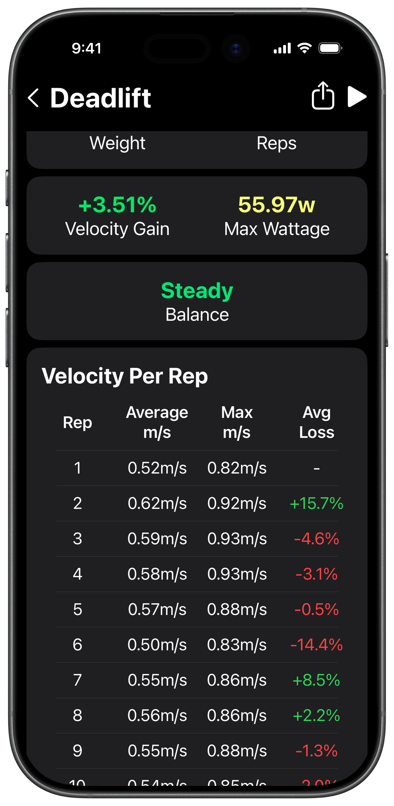 We provide insights into Velocity, Range of Movement, Rep Count, Tempo, Power Output and more.